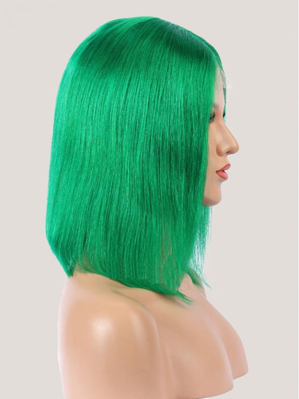 Medium Straight Dark Green Bob Lace Front Human Hair Wigs