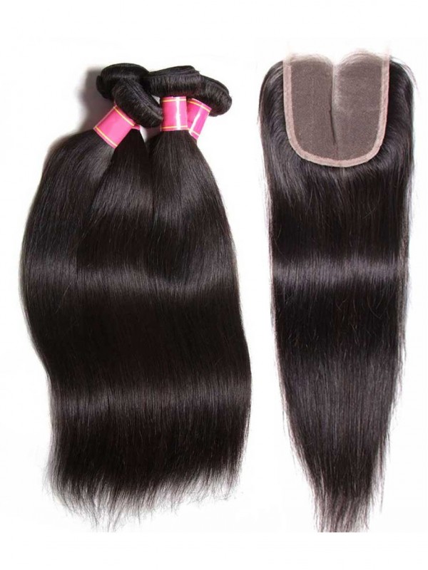 4 Bundles Virgin Straight Human Hair Weave With Lace Frontal Closure