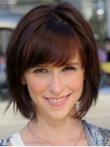 Claret Straight Short Capless Human Hair Wigs With Bangs 12 Inches