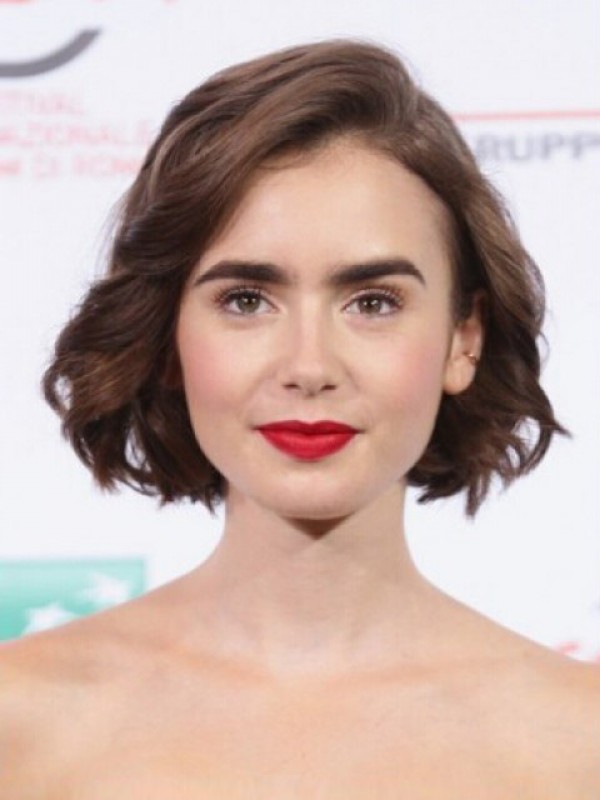 Lily Collins Short Wavy Bob Lace Front Wigs
