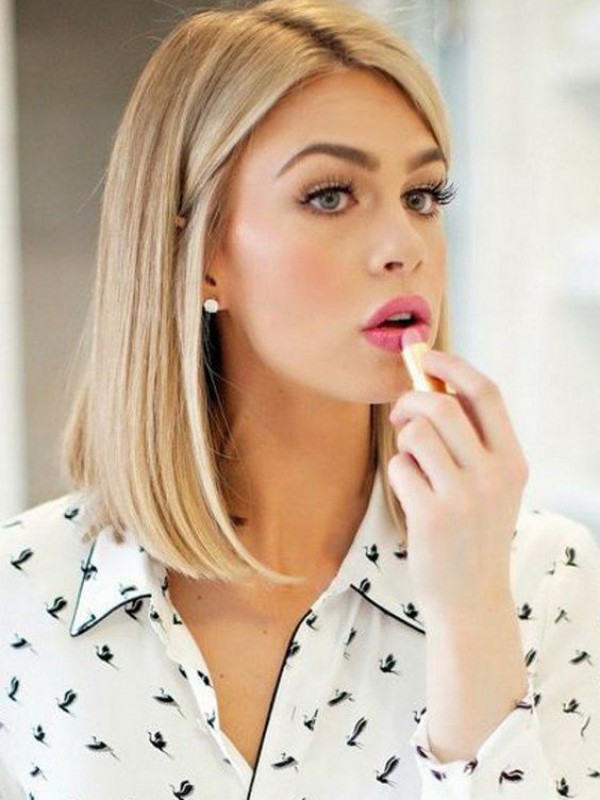 Mid-Length Straight Blonde Lace Front Human Hair Wig 16 Inches With Side Bangs